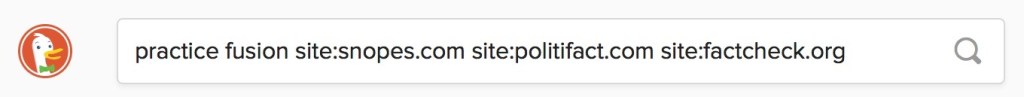 A Los Angeles Times article claims a company named Practice Fusion received money for unnecessarily pushing a large amount of referrals for addictive pain killers to doctors. While the Los Angles Times is deemed a reputable source, there is still reason to fact-check the claims made in any publication (the verbatim statement of fact in the article is: “Its maker, a software company called Practice Fusion, was paid by a major opioid manufacturer to design it in an effort to boost prescriptions for addictive pain pills”). So, to start out this fact-check, I followed the protocol for Move 1 in Web Literacy for Student Fact-Checkers: looking for previous work.